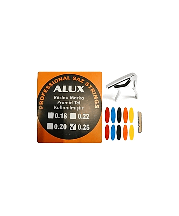 Alux Şenses 0.25 Divan Bağlama Piramit Tel Seti + Metal Kelepçe + 10 Adet Numaralı Tezene+eşik