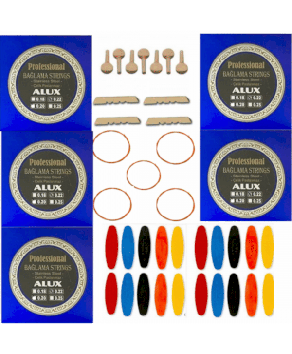Şenses Alux 022 Divan Bağlama Takım Teli 5 Takım + 5 Bambam + 7 Ağaç Burgu + 20 Adet Tezene + 3 Eşik