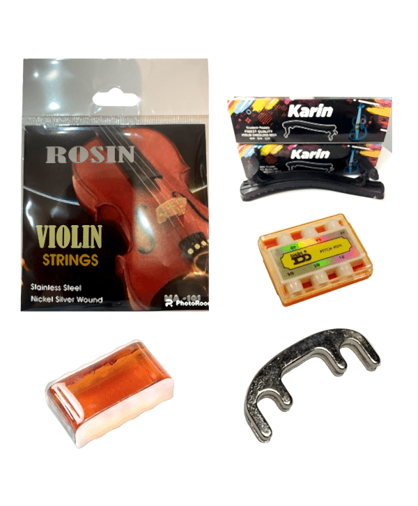 1 Takım Keman Teli + 1 Adet Keman Yastığı + 1 Adet Metal Susturucu + 1 Adet Reçine + 1 Adet Akort Düdüğü Hepsi Dahil.