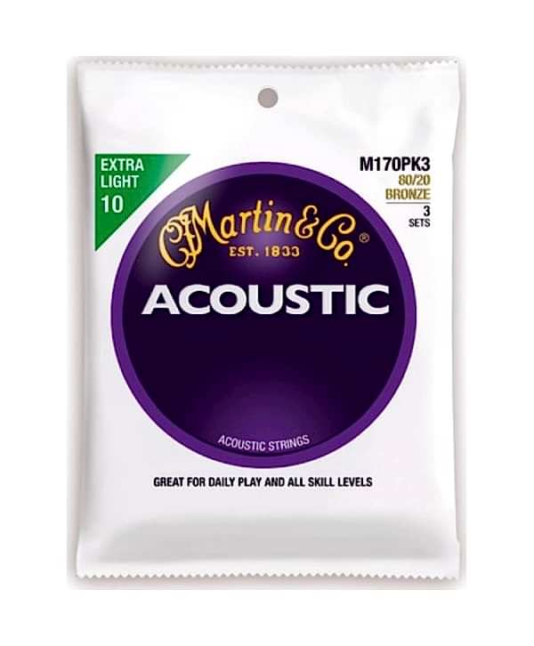 Martin M170PK3 - 80/20 Bronze (Extra Light) 10-47 Akustik Gitar Teli - 3 Set